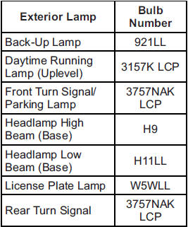 For replacement bulbs not listed here, contact your dealer.