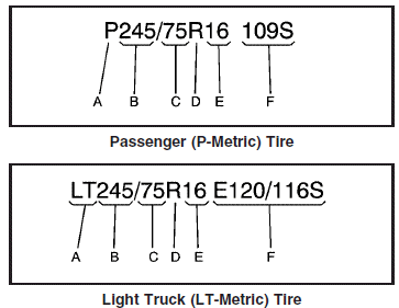 (A) Passenger (P-Metric) Tire: The United States version of a metric tire sizing system. The letter P as the first character in the tire size means a passenger vehicle tire engineered to standards set by the U.S. Tire and Rim Association.