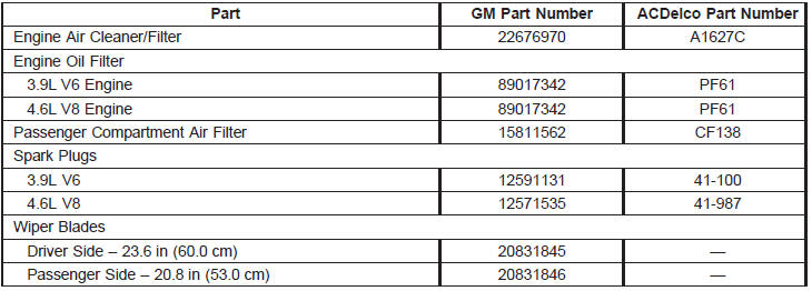 Replacement parts identified below by name, part number, or specification can be obtained from your dealer/retailer.